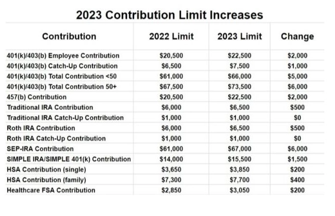 CONTRIBUTION LIMITS ON TAX-QUALIFIED ACCOUNTS: IRS contribution limits across all tax-qualified account types are increasing in 2023. Here are the contribution limits for individuals for each type of account for 2023: